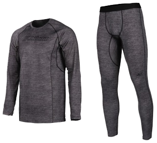 Extremely warm underwear (shirt and pant) from KLIM’s Snowmobile Collection. Different thicknesses of fabric are used to prevent unwanted sweating—for example, lighter fabrics are used under the arms than on the chest.