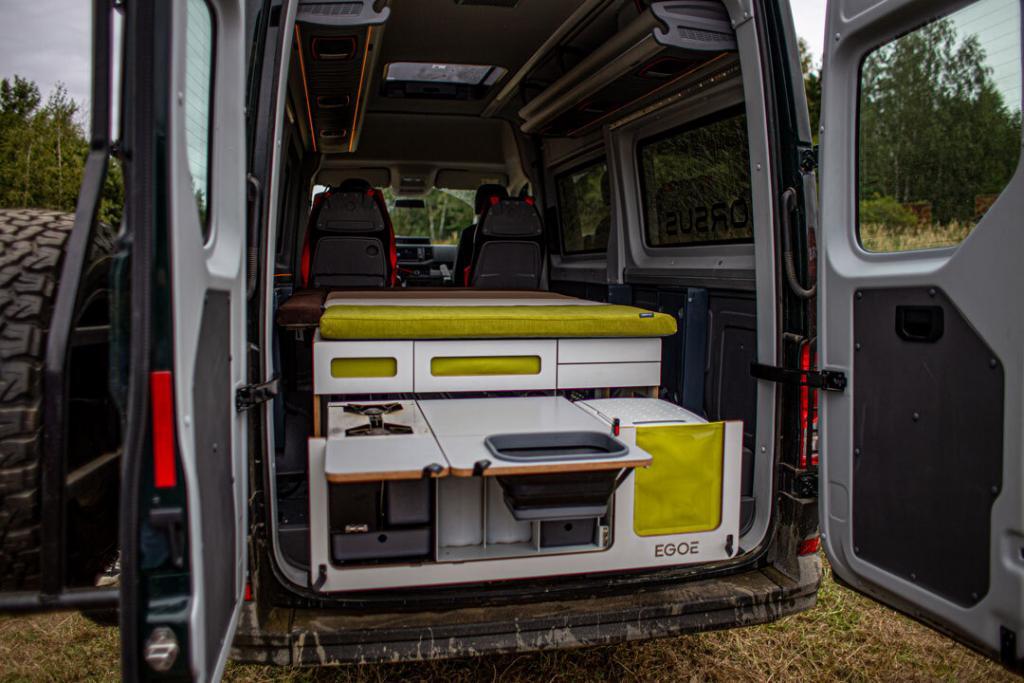 When considering different vehicle types for overlanding, 4×4 vans do not fair as well in extreme terrain compared to their smaller counterparts such as Land Rovers, Toyotas and Jeeps. Overall length, rear overhang, wheelbase, ground clearance, height, width, turning circle, and breakover angle immediately spring to mind on the downside. On the upside however, substantial payload, a ceiling height to stand up in, along with a voluminous interior for several berths, bathroom, kitchen, and a garage are valid arguments for adventurers, explorers and sports enthusiasts in search of remote destinations.