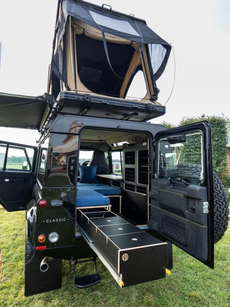The ultimate camping vehicle features a new Land Rover Classic approved interior conversion from partner The Ply Guys, and a similarly officially approved new roof tent from TentBox, which will be available early next year, on the outside.
