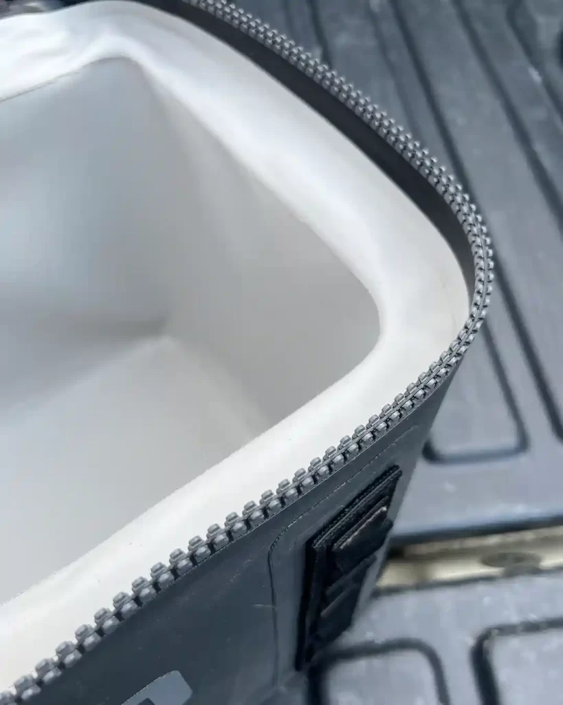 The zip is waterproof. In fact, when we drove up to 2,700 m the cooler had inflated due to the changing air pressure…so it’s definitely not going to leak.