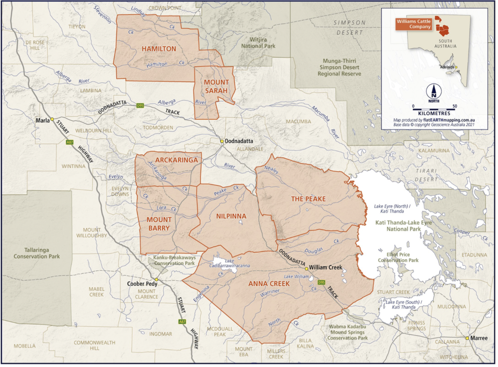 Ownership has changed several times. In 1935 Anna Creek became part of S Kidman & Co, joining the already owned Stuarts Creek Station (since 1919) and The Peake Station (since 1902). In December 2016, Williams Cattle Company acquired Anna Creek Station from S Kidman & Co (along with The Peake Station), a sale that kept the property from being a foreign-owned investment. A large chunk of Anna Creek Station is in the military-sensitive Woomera Rocket Range.