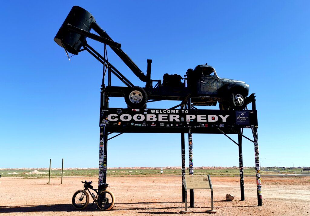 Trevor gave Gelareh an unbooked seat on one of the scenic flights over the Anna Creek Painted Desert and Lake Eyre, which she was treated to as I headed off, pedalling towards Coober Pedy. I cycled with only Russell in support while the others stayed in William Creek to try to deal with the mechanical issue. Martin didn’t want to drive his vehicle long distances in case he did more damage. It was an incredibly worrying and frustrating situation.