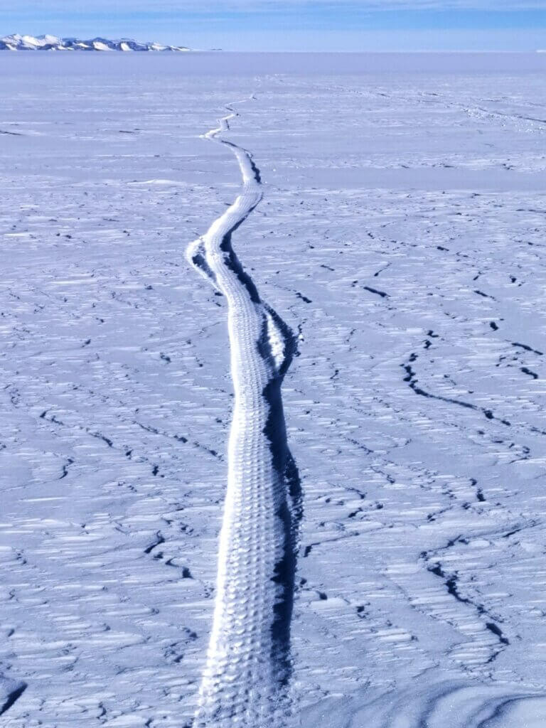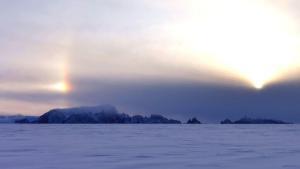 Finally a beautiful day – sunny, clear and cold. It was still -17C when I set off and no doubt with the wind chill, it would have been much lower. The first 20km was the roughest part of the journey as the route traversed a sastrugi field, crossing perpendicular to the line of the ice carvings. I have cycled along some heavily corrugated roads in my time, which is no fun, and I could usually find some kind of rhythm. But here I hit the obstacles at a totally irregular rate and the amplitudes of the furrows and bumps were random. Over the first section of the day, the vehicle covered 10km while I had done 10.8km. The extra distance is because I had to constantly avoid the roughest patches of the ice sculptures.