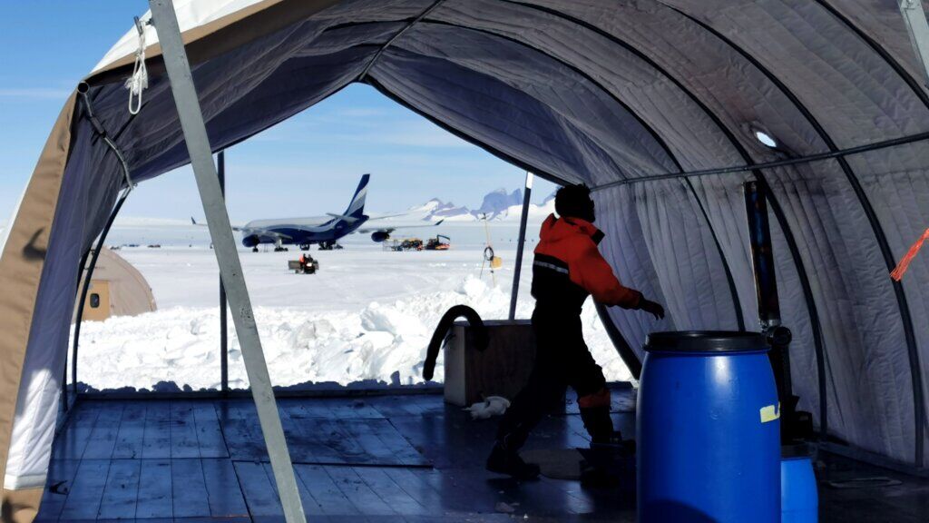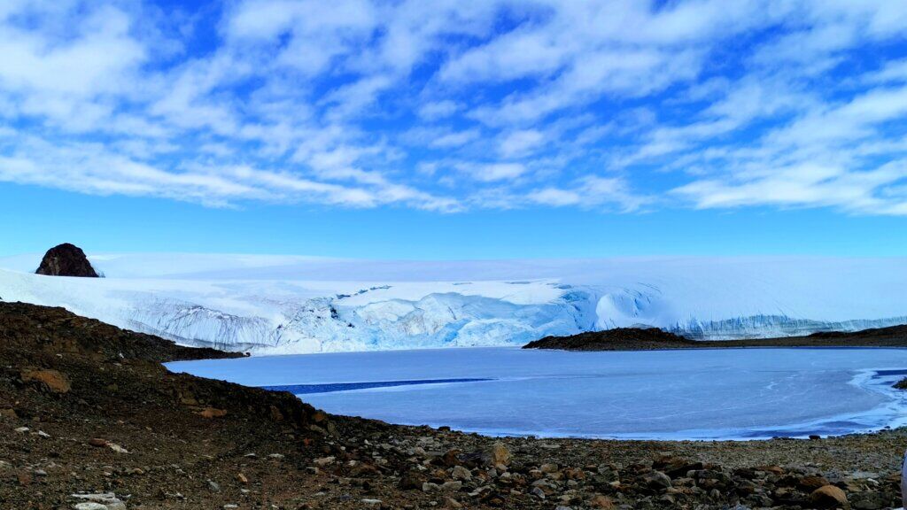 The group of White Desert employees and three Indian Antarctic expeditioners who ventured across from Maitri, the Indian base also on the Oasis, were waiting, and greeted me with applause and hand shakes – and champagne! I was made feel really welcome and we celebrated together.