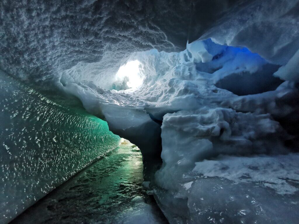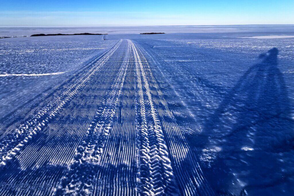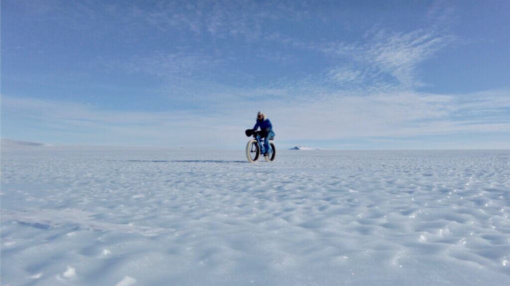 Nearer to Novo Runway, the landscape flattened out and I started hitting large patches of ice. These ice fields have an irregularly dimpled surface, often sculptured into waves and points. I was again very nervous but tried to relax my shoulders as much as possible so not to over-react if a wheel slipped. I didn’t measure exactly how much ice I had to traverse but estimate it was probably around 7-8km. It felt like an eternity!