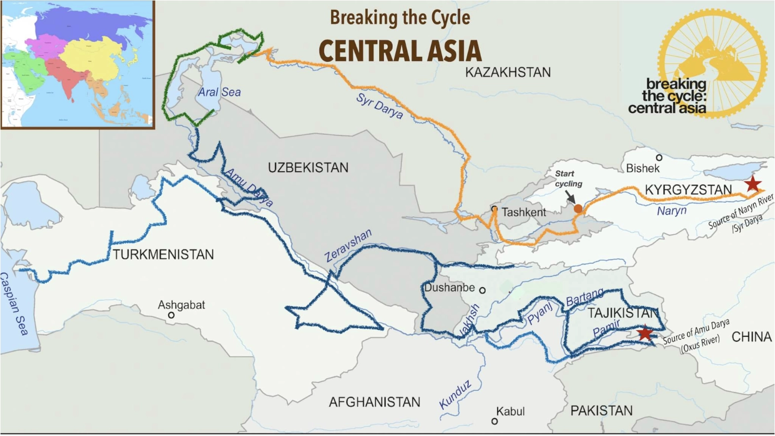 I had always wanted to travel through Central Asia but hadn’t worked out how to pull all these interests and passions into one unique and engaging expedition. But then I had an epiphany – Just as I cycle and connect with the people and the lands, the waters that flow from the mighty glacier-fed rivers, the Syr Darya and Amu Darya, connects every aspect of life.