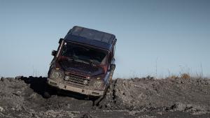 Nun, auf dieser Etappe. Das erste Problem war unwissentlich selbst verschuldet. Wir mussten den Kraftstofftank modifizieren, damit wir eine Kardanwelle von der Zapfwelle bis zur Heckstoßstange führen konnten. Allerdings war mir nicht klar, dass sich die Kunststoffanschlüsse durch Anheben der Karosserie über den Tank direkt unter einem Karosserieträger befanden. Beim Überfahren der ersten Bodenwelle quetschten wir Kraftstoffleitungen, sodass, als ich das nächste Mal tankte, der ganze Vorplatz der Tankstelle voll Diesel lief. Im Grunde waren die Tanks beider Fahrzeuge hin. Wir bastelten die ganze Fahrt über an den Tanks herum und setzten Fehlercodes zurück, weil die Elektronik davon ausging, die Tanks seien leer.