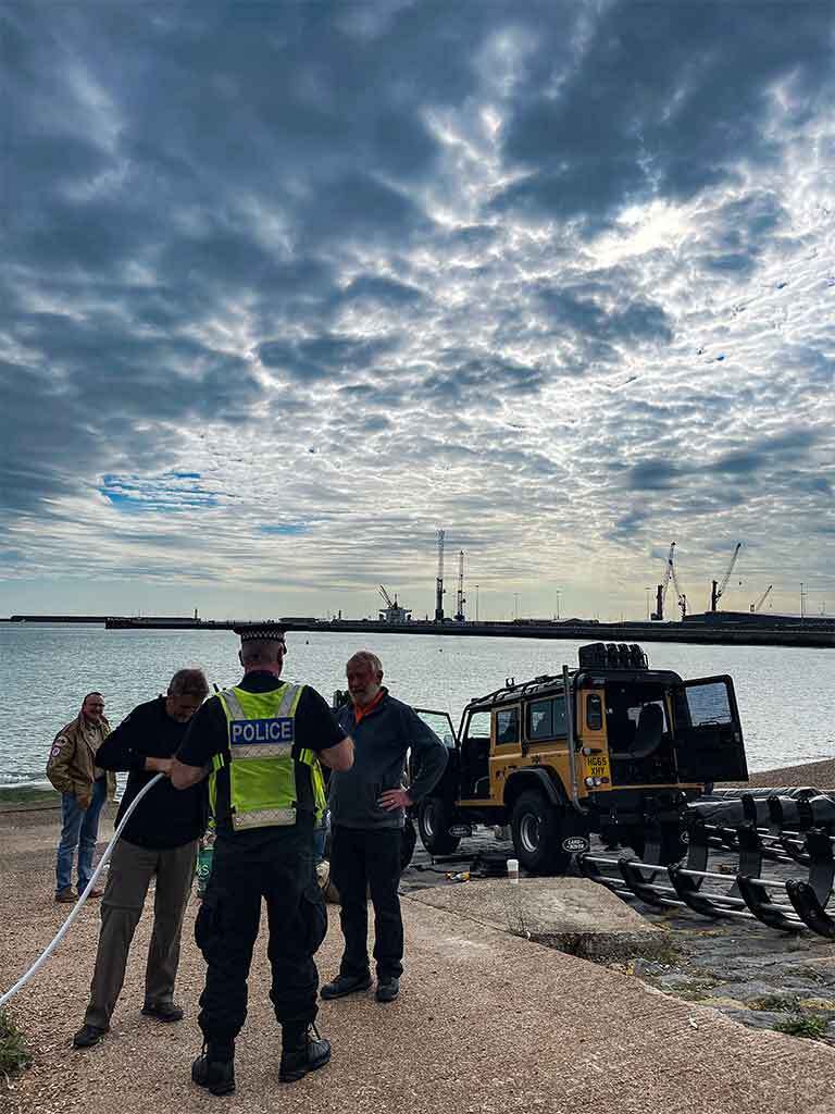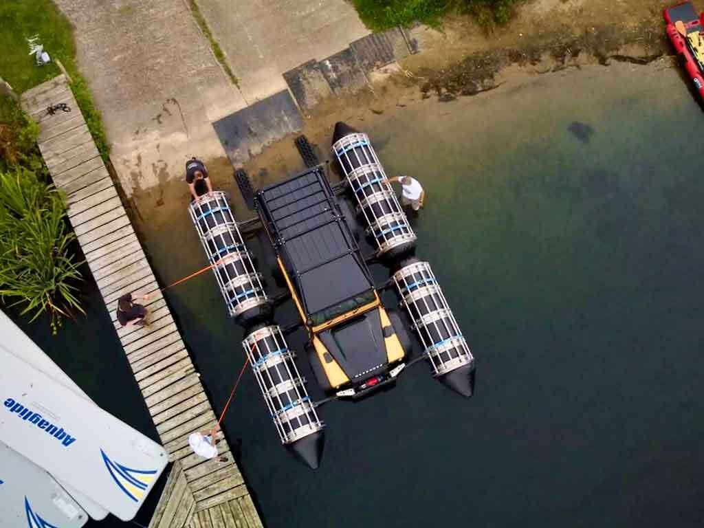 Wir haben die meiste Zeit des letzten Jahres auf dem Wasser verbracht, sogar im Ärmelkanal, aber wir bekamen die Leistung der Zapfwelle nicht so hin, wie wir gehofft hatten. Schließlich sprachen wir mit fünf verschiedenen Leuten, die uns ebenso viele Propellerkonfigurationen vorschlugen, aber die Geschwindigkeit reichte immer noch nicht. Also kauften wir einen dritten Defender, die Entwicklung wird derzeit in Hereford fortgesetzt.