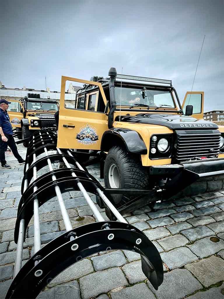 Nicht unähnlich dem Abenteuer First Overland, als sich sechs Studenten aus Oxford und Cambridge in zwei Land Rover Series 1 auf eine vermeintlich unmögliche Reise von London nach Singapur begaben, versucht Jeff Willner, die möglicherweise letzte Overland-Herausforderung, die Fahrt von London nach New York, zu bewältigen—eine Reise, bei der große Pontons an den Fahrzeugen angebracht werden, um die Beringstraße zu überqueren, die an ihrer engsten Stelle zwischen Russland und Alaska etwa 82 km breit ist.