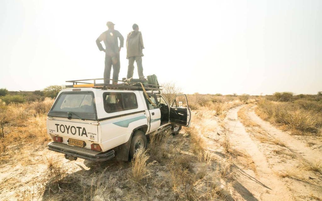 So seltsam unsere zusammengewürfelte Truppe auch anmutete, und so begrenzt unsere Fähigkeit miteinander zu kommunizieren war, verband uns doch vor allem ein Interesse— das Überleben einer der ältesten Sammler- und Jäger-Stämme der Welt: der Kua, Mitglieder der San-Buschmänner. In den kommenden zwei Wochen sollte die Straße noch viel holpriger werden, sowohl wörtlich als auch metaphorisch, auf unserer Reise tief ins Herz der Kalahari in einem Toyota Raider, der seine besten Jahre längst hinter sich hatte.