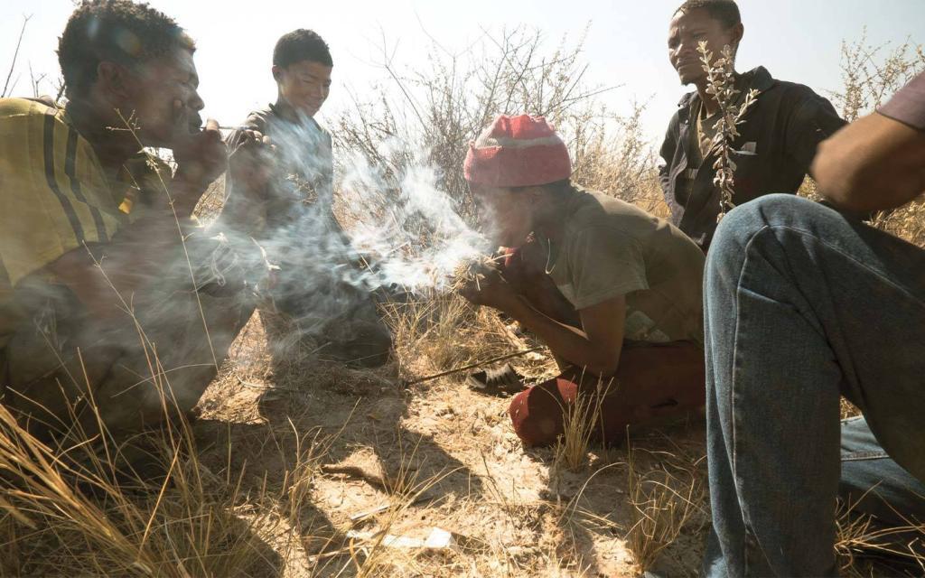 Kal und ich sprachen oft miteinander, manchmal politisch, manchmal nur höflich. Dabei versuchten wir Licht in die dunkle Vergangenheit zu bringen. Wir saßen bis spät in die Nacht um das Lagerfeuer und ich fragte, wie es für ihn sei hierher zurückzukehren. Zuerst blieb er still, sein Gesicht wie gemeißelt—in starkem Kontrast zu den Flammen in dieser mondlosen Nacht. Er war 17 Jahre von zuhause weg gewesen. “Ich kann wieder atmen”, sagte er schließlich. Unser Dolmetscher übersetzte seine klangvollen Schnalzlaute, “und es macht mich traurig. Traurig, dass ich überhaupt fortgehen musste.” Für viele Stammesmitglieder wie Kal bedeutet die Rückkehr ins Reservat trotz Jagdverbots und ohne Wasser das schier Unmögliche möglich zu machen.