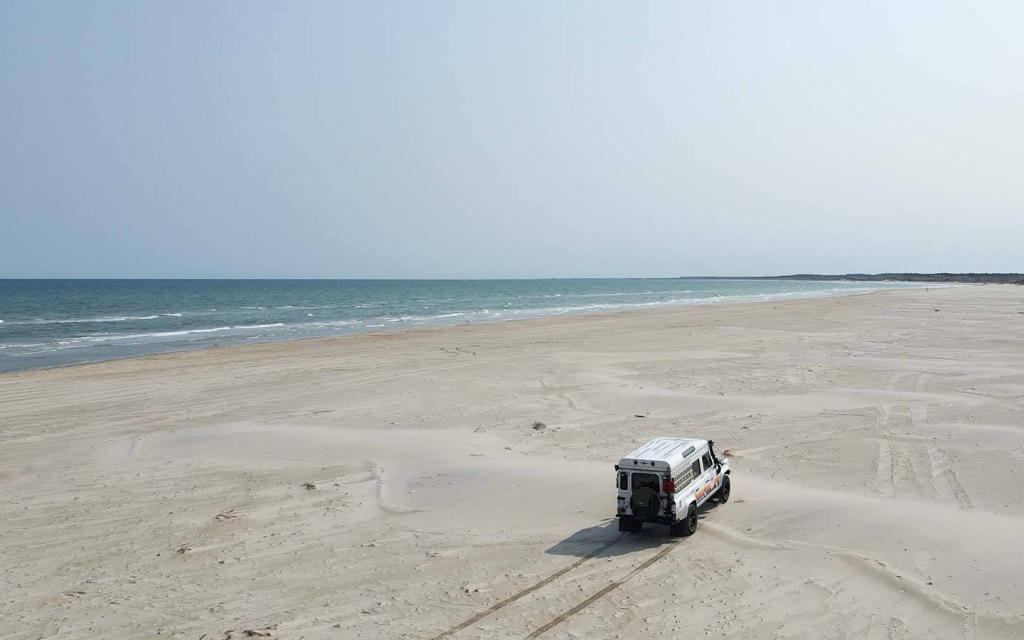 Einige Strände darf man sogar befahren, was in Europa nicht selbstverständlich ist. Man sollte hierbei jedoch Vorsicht walten lassen: Es gibt viele Geschichten von Reisenden und ihren Fahrzeugen, die bei Flut im weichen Sand steckengeblieben sind. Damit uns so etwas nicht passiert, hatten wir uns im Vorfeld über die Gezeiten informiert.