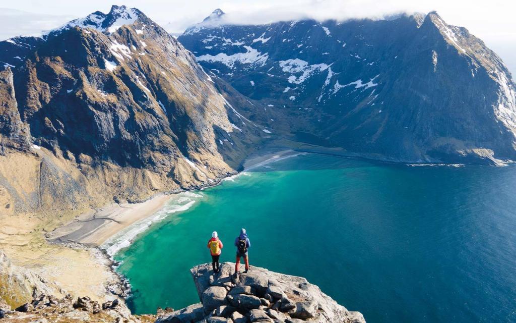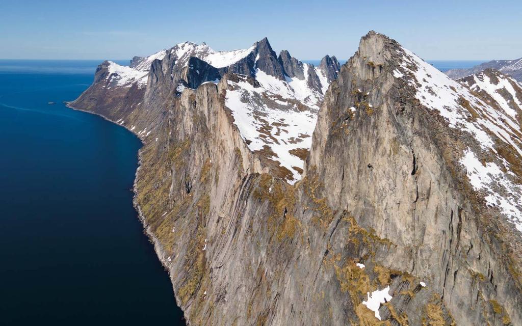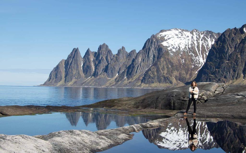 In Bodø setzten wir mit der Fähre zum westlichsten Punkt der Lofoten über—stell dir Berggipfel vor, die auf die Sandstrände fallen. Ein Muss, wenn man Norwegen besucht. Vor allem wegen der faszinierenden Wanderwege hoch über den kalten arktischen Gewässern. Viele meinten, es lohne sich nicht, weiter hinauf zu fahren, aber die nördlichen Schwesterinseln der Lofoten, Vestragren und Senja, bieten eine einzigartige Schönheit und noch wildere Landschaften, die man nur mit wenigen einheimischen Fischern teilt.