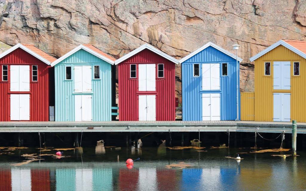 In Schweden erkundeten wir zunächst die Schären. Es gibt einen kostenlosen gelben Autofährdienst zwischen Dutzenden von kleinen Inseln und dem Festland, der das ganze Jahr über täglich hin und her fährt. Die Schären westlich von Göteborg sind unterschiedlich groß, von Öckerö mit einem Supermarkt und Eishockey-Zentrum bis Hyppeln mit 150 Einwohnern und einem 30-minütigen Rundwanderweg um die Insel.