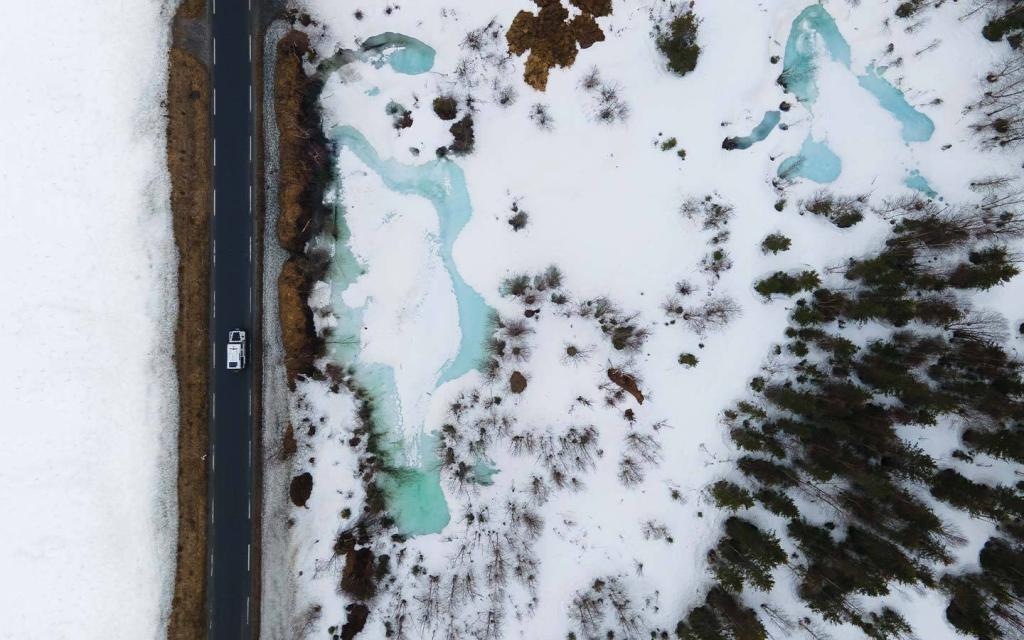 Wir fuhren weiter gen Norden; in diesen Breitengraden ist das Wetter wechselhaft. Wir pendelten ständig zwischen dem Frühling in den Talsohlen mit blühenden Apfelbäumen und dem Winter auf den Gebirgspässen mit drei Meter hohen Schneewänden und zugefrorenen Seen. Je weiter nördlich wir kamen, desto kälter wurde es.