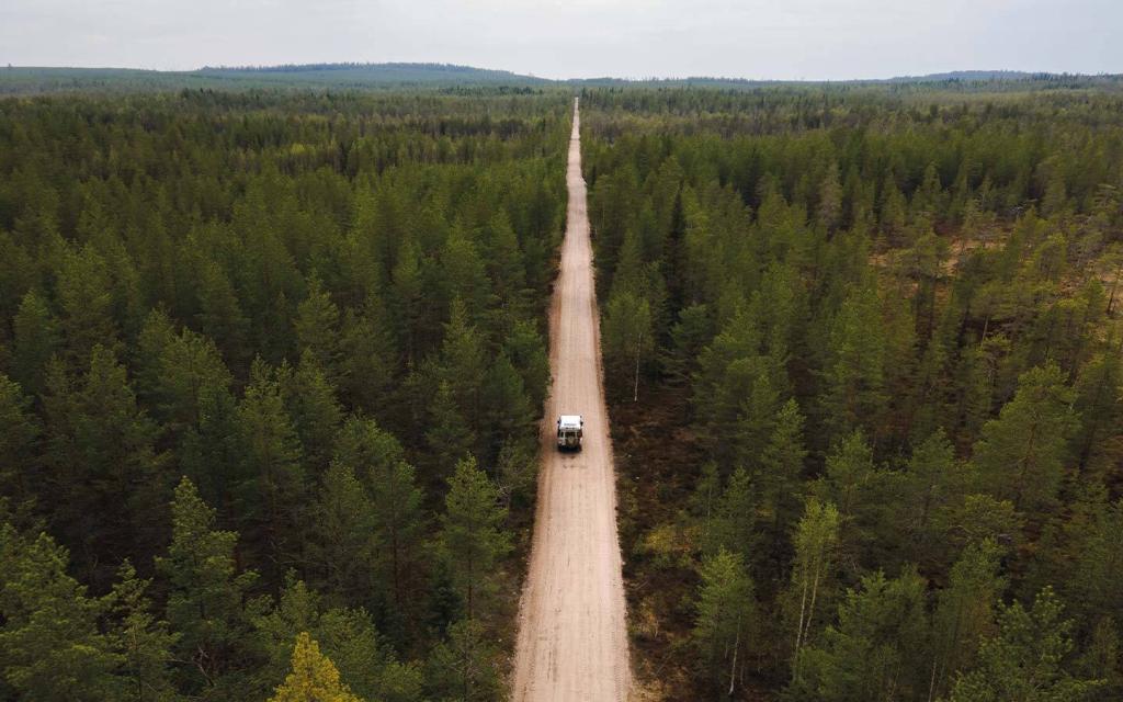 Als wir die Grenze überquerten, fragten wir uns: Wie machen wir das Beste aus dieser einzigartigen Umgebung? Wir ließen die Luft aus den Reifen und beschlossen, Finnland ausschließlich offroad zu durchqueren. In knapp zwei Stunden hatten wir die Pisten kartiert, die uns nach Süden führen würden.