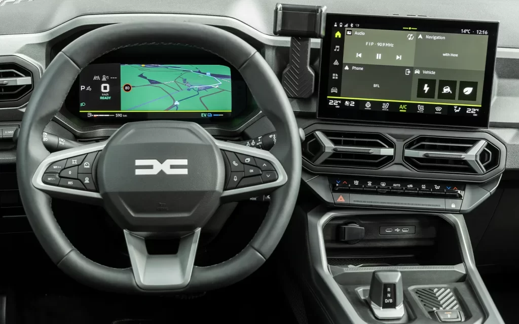 On the inside, Dacia has invested considerable thought into creating a user-friendly space. The high-mounted vertical dashboard increases cabin space, and driving information is neatly displayed on a slick digital instrument panel—one of the crown jewels of the Bigster.