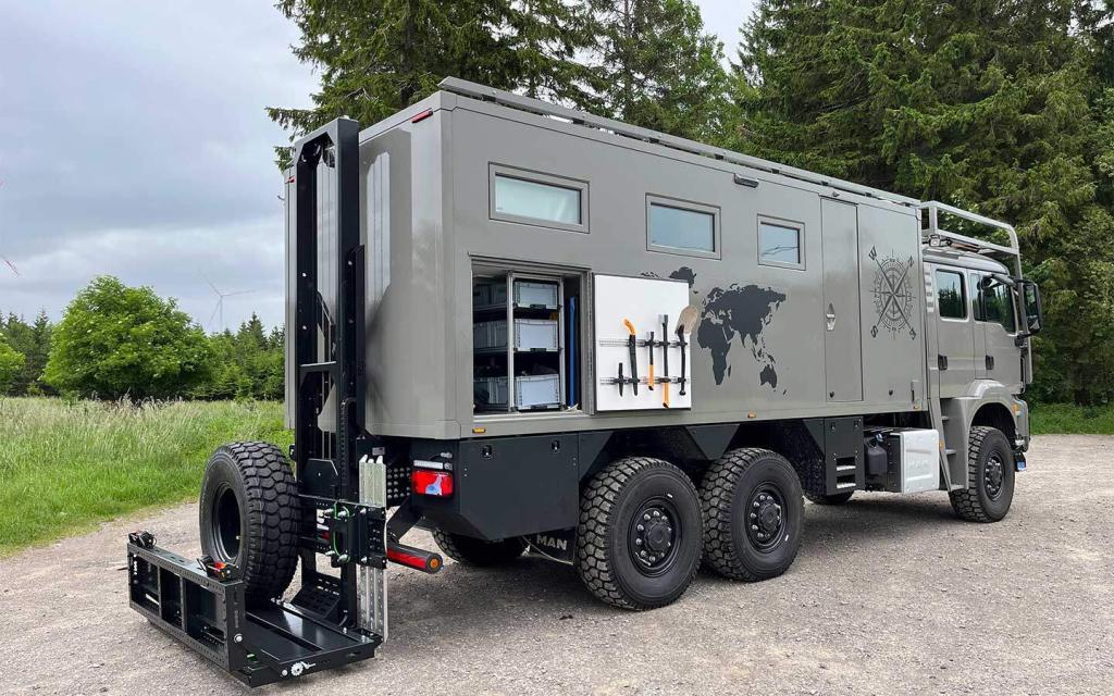The smaller of the two models can carry up to 450kg and is mounted to the chassis of the vehicle. This construction method ensures the cabin and intermediate frame are not subjected to any unnecessary stress. At the same time driving comfort is improved due to the lower center of gravity.