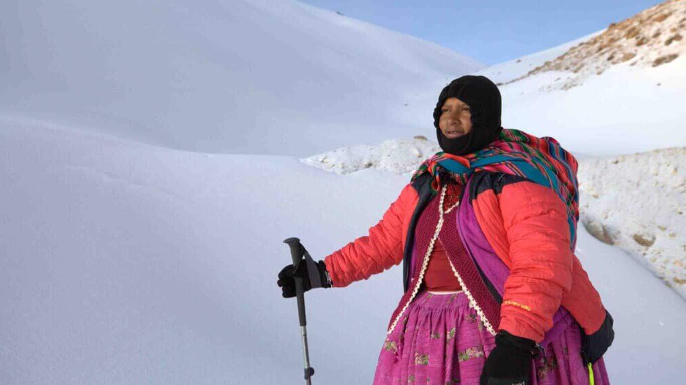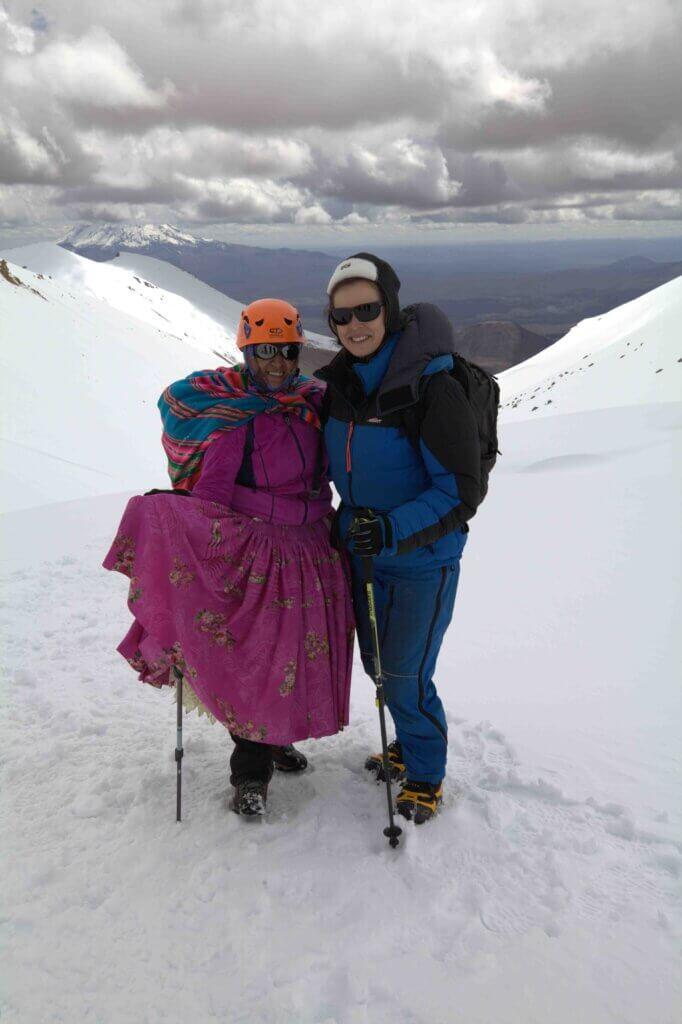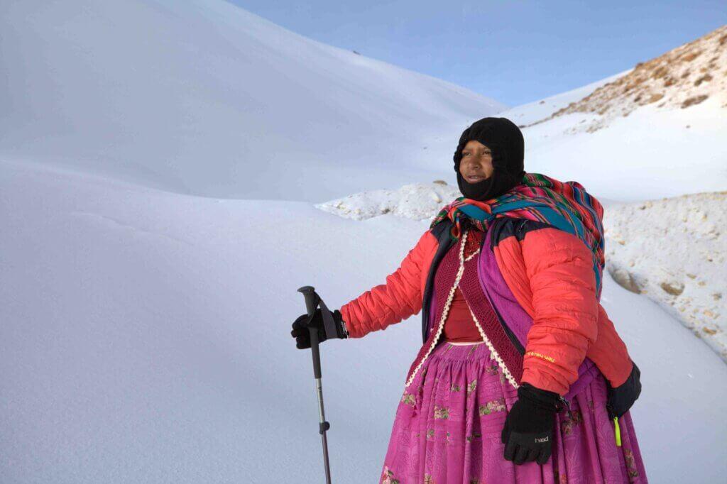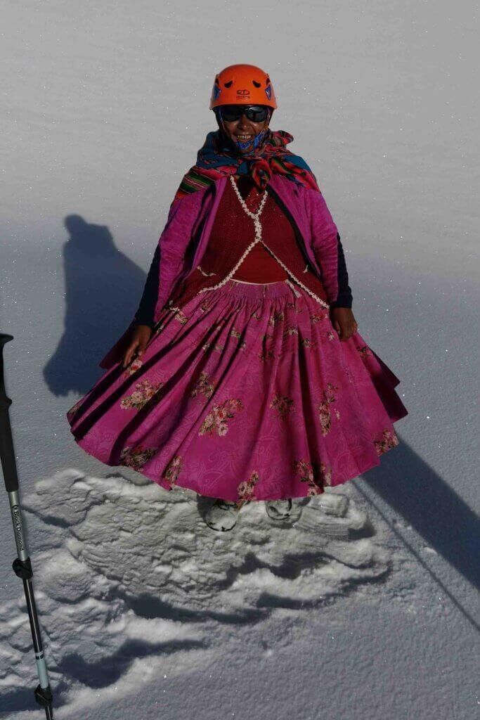 The Cholitas Escaladoras are a group of indigenous Bolivian women, the most socially disadvantaged group in this developing country. They banded together in 2015 to climb 6000m+ mountains in traditional dress to inspire Bolivian indigenous women, and by extension women worldwide, and show them what they can really do. They have a particular stance on violence against women. My vision was to climb with Elena to celebrate International Women’s Day.