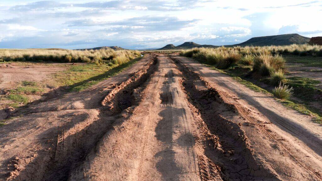 I set off from El Alto, a large satellite town of La Paz, rejoining the line of my 2020 journey. Rather than take the national highway, I chose to go via the industrial town of Viacha, about 25km away from El Alto. I set off into heavy traffic, direction – Tiawanaku. After Viacha, the traffic finally eased. From there the road bisected fertile green fields with chains of mountains visible in the distance to the east and west. The highlight of my day’s ride was a 20km route along a gravel road that tracked a disused railway line. The line was used to export/import produce and goods between Bolivia and Peru. Reza, the producer, had me cycle a short distance along the railway as a way of remembering my Trans-Siberian Cycle expedition ( where we had to follow the Trans-Siberian railway for 1500km).