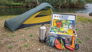 I took shelter in the car for almost an hour trying to get warmth back into me and devise a new clothing system with what I had. My Mont shell salopettes made from Hydrolite material, normally for my polar expeditions, kept the rain and wind off my legs. I had already learned to stuff my light down jacket under my Santini jacket – it stays dry as it is protected in a cycling position and acts like a furnace, keeping my core warm. I slipped some chemical hand warmers inside a pair of wool mitts and crudely attached waterproof stuff sacks over each hand to keep the wind and rain out. It looked pretty comical, but I could still work the gear and brake levers. The system worked and I was able to withstand the conditions.