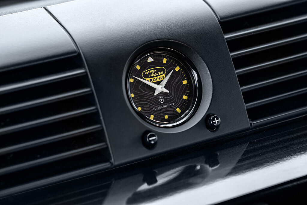 Inside, the instantly recognisable 4×4 benefits from full black Windsor leather upholstery with Recaro sports seats, contrast yellow stitching and a bespoke Land Rover Trophy clock face by Elliot Brown. Land Rover Classic’s own Classic Infotainment System with integrated navigation and mobile device connectivity is also fitted.