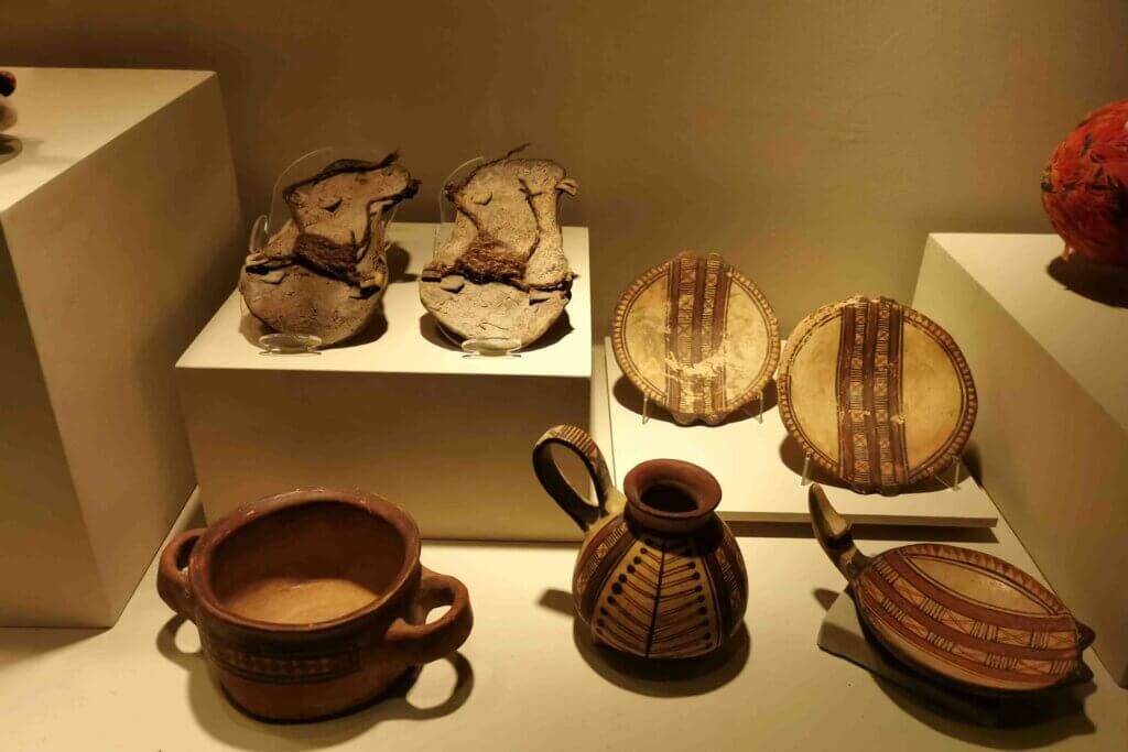 Found with the children buried in their graves were more than 100 artefacts, all in miniature. Each item was specifically made to represent an aspect of their lives on Earth. They would need these to survive in their next life and it was important to show the Gods these representations. All pieces of craftwork were very fine quality made by dedicated, qualified artists. The Incas had no written language, but every material, its design and colour had significance. These pieces were found with the girls. Shells had special significance representing fertility.