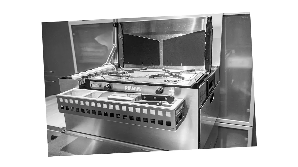 The quality brands included are impressive. Think Zwilling knives, a Primus two-flame gas stove, WMF cutlery, Sea to Summit pots and pans, Gimex glasses, and Flamefield crockery—this kitchen is decked out with top-notch gear. Plus, to get you started, you have six Ostmann shakers filled with assorted herbs and spices.