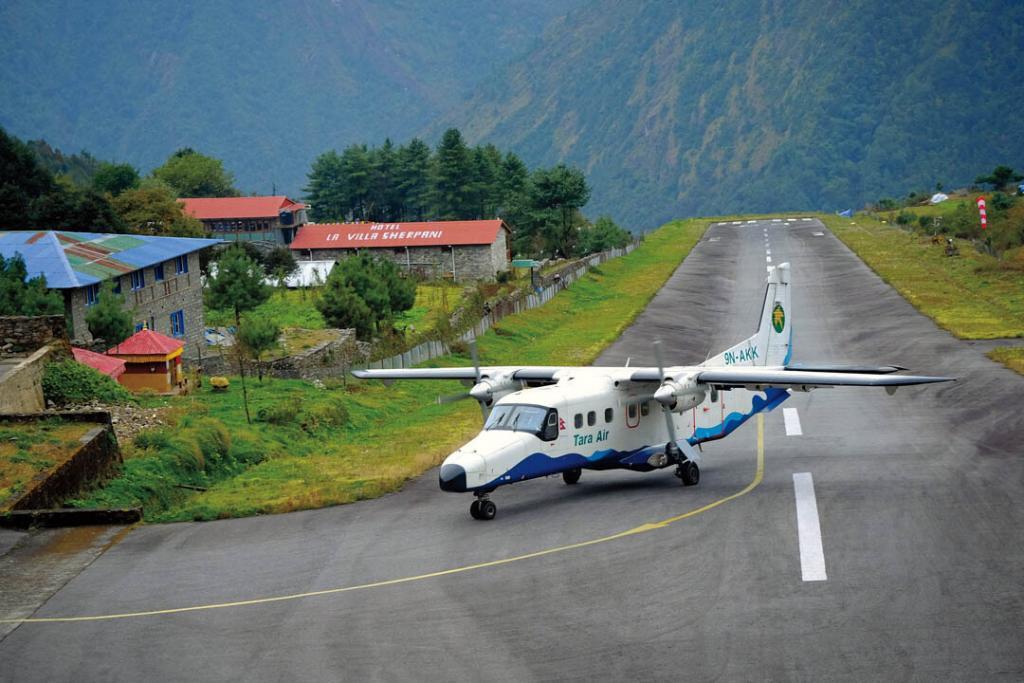 On a crisp morning just after first light, I boarded a small plane bound for the village and infamous landing strip at Lukla. Some refer to it as an airport, but most pilots simply know it as the most dangerous runway in the world. Seemingly painted onto a mountainside, it has a cliff at one end and a rock wall at the other. Not only does it bisect the village of Lukla with buildings and houses flanking either side, it is built on an imposing slope. There are no second chances when landing in Lukla and every trip to and from its tiny patch of pavement represents a genuine feat of daring-do.