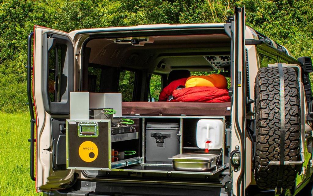 QUQUQ is internationally recognised for their camp boxes which turn a wide range of commercial vans, family estates, and 4x4s into campers. The arguments in favour of the QUQUQ solution include quick installation (literally within minutes), double bed, twin burner stove, fridge, and even a sink complete with running water.