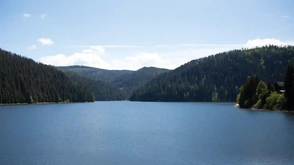 The last noteworthy lake, Lacul Rosu (the Red lake), near Bicaz Gorge in the Hasmas Mountains, is a natural dam formed by a major landslide in 1837. Its name is derived from the reddish alluvial soils deposited by its main tributary, the Bicaz.