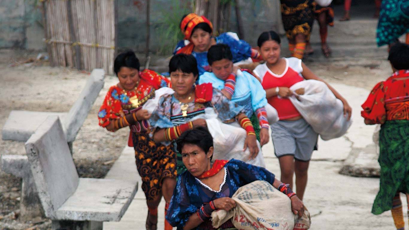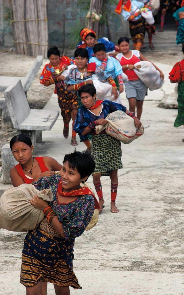 I paid him $300 cash, met the 10-man crew at a crowded casino/discotheque on a Thursday night, and on Friday we sailed. We motored around the islands of the San Blas Archipelago, a cluster of white sand dots in the Caribbean, to buy coconuts from the indigenous Kuna people. The women there paraded toward us in patterned, primary-colored molas with ornate headbands and beaded jewelry around their wrists, ankles, and necks, carrying burlap sacks full of coconuts. The crew counted their stocks out one by one, and the captain paid them 10 cents for each coconut: I watched him hand over $2.40, $6.80, $1.70, and so on. It was a slow, steady labor.