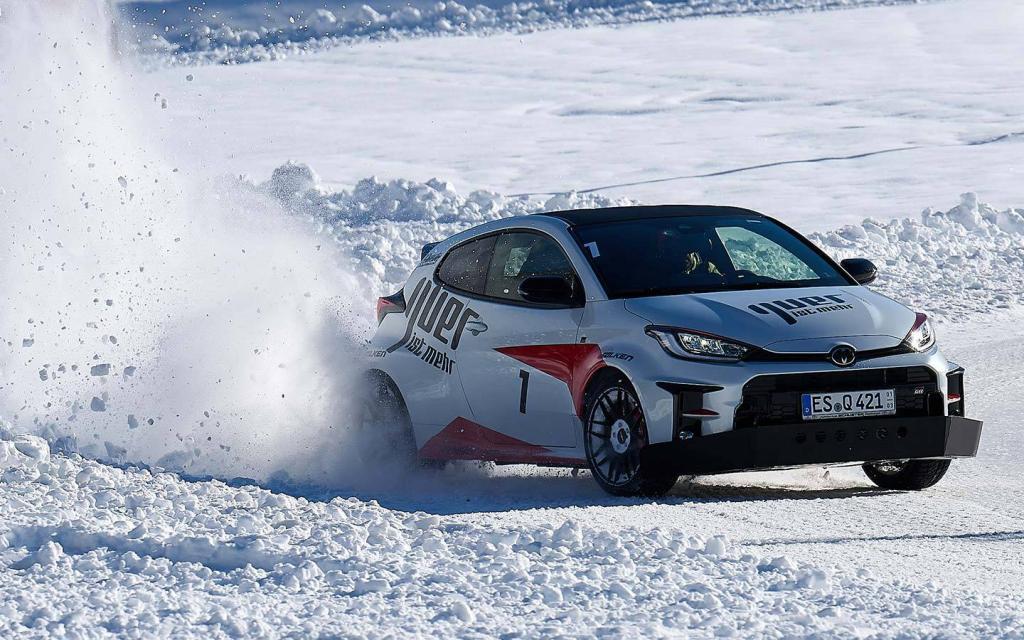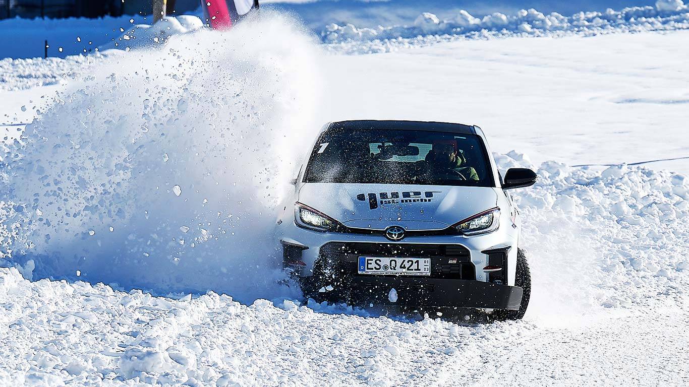It goes without saying that I lost it on more than one occasion and ended up next to the track. There was one particular long left-hander where understeer got the upper hand and the back end of the car ploughed into softer material with a spectacular explosion of snow. I kept my right foot firmly planted and the Yaris GR/HS02 Pro combination clawed me back on to the track.