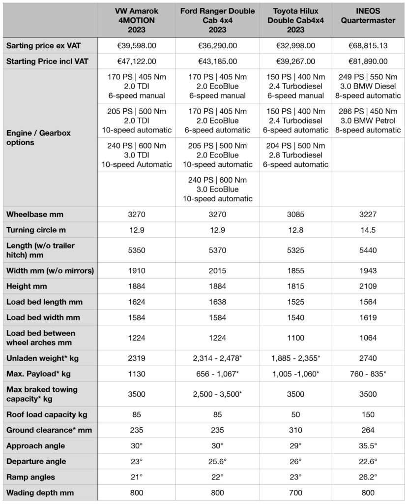 Wading depth at 800 mm is equal to the Amarok and Ranger, with the Toyota lagging slightly behind at just 700 mm.