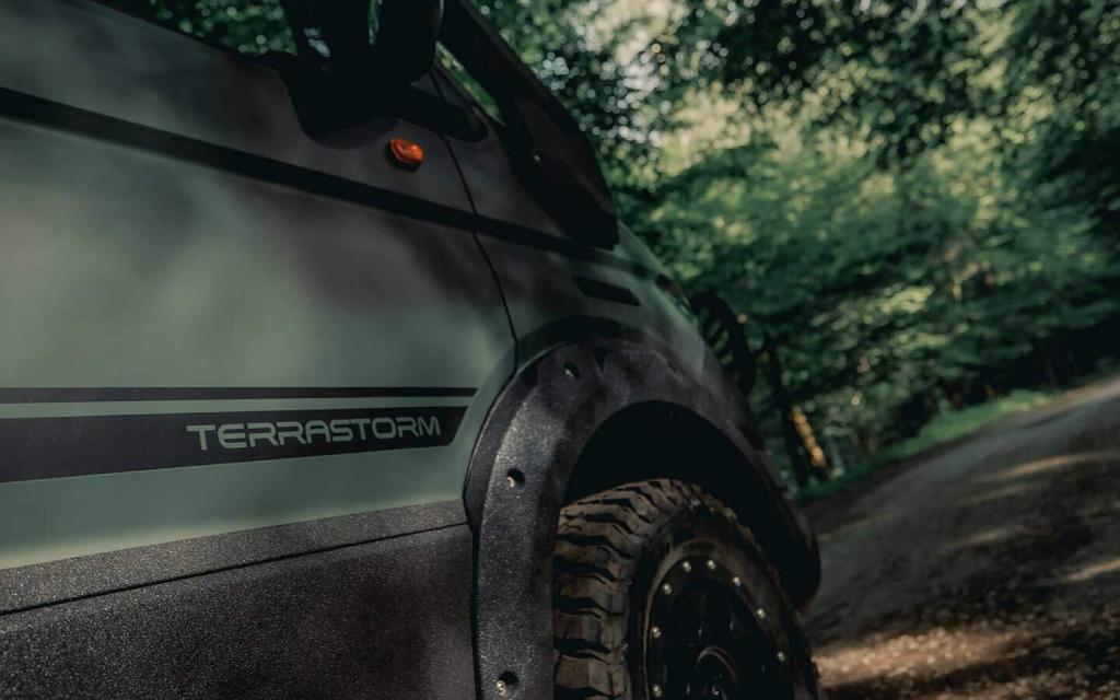 The 4×4 TORSUS TERRASTORM, based on a Volkswagen Crafter/MAN TGE 4Motion chassis, features a EURO VI D 2.0-litre bi-turbo diesel engine offered in two power guises, 140PS (103kW) and 340Nm or 176PS (130kW) and 410Nm, mated to a six-speed manual or an eight-speed automatic transmission.