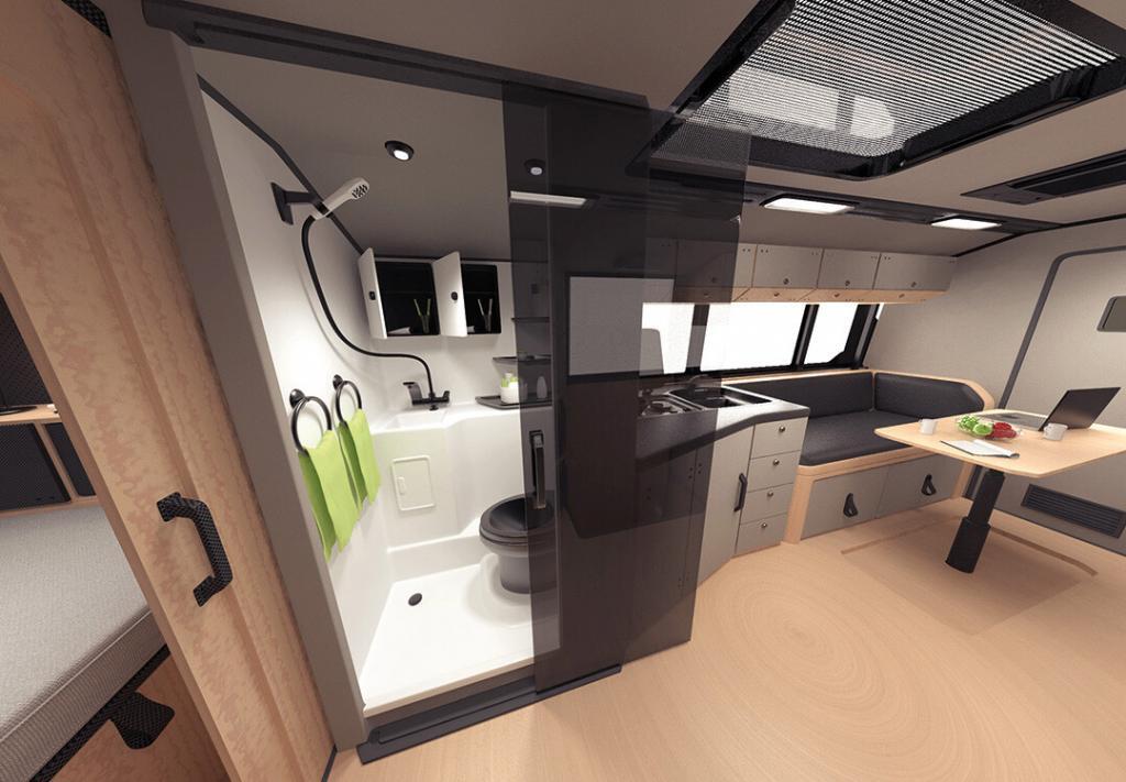 Above the chassis, the composite body is fully insulated against temperatures and noise. The decision to not use steel panels also negates the risk of rust and contributes to durability and longevity.