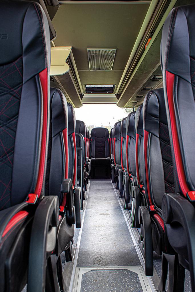 a manual gearbox and one diff lock, and 37 passenger seats. The spare tyre location beneath the chassis was not ideal and would best be relegated to a rack on the rear.