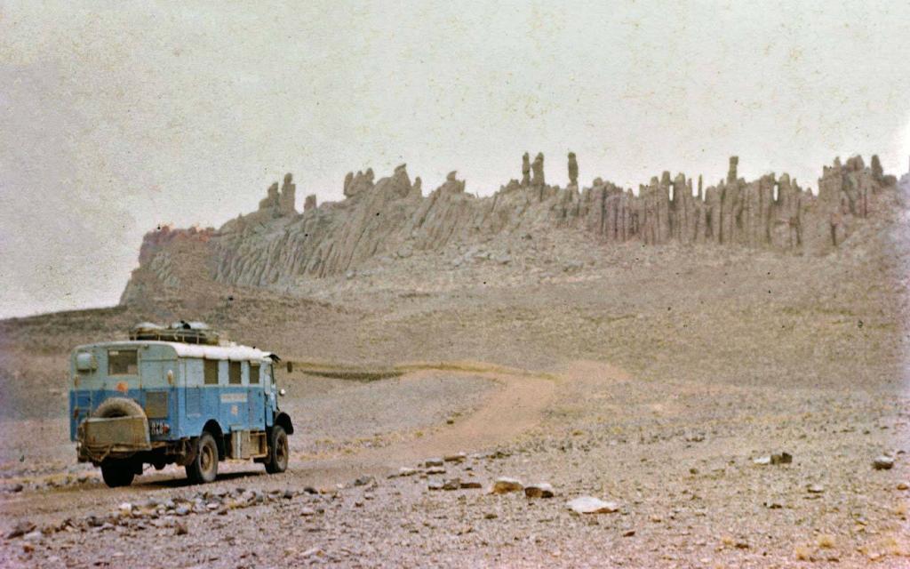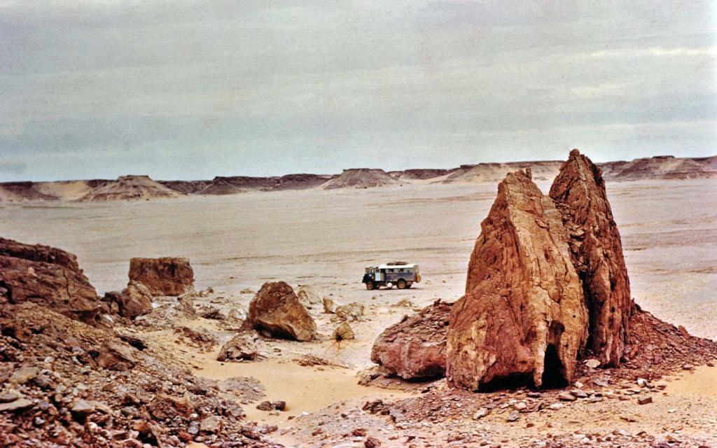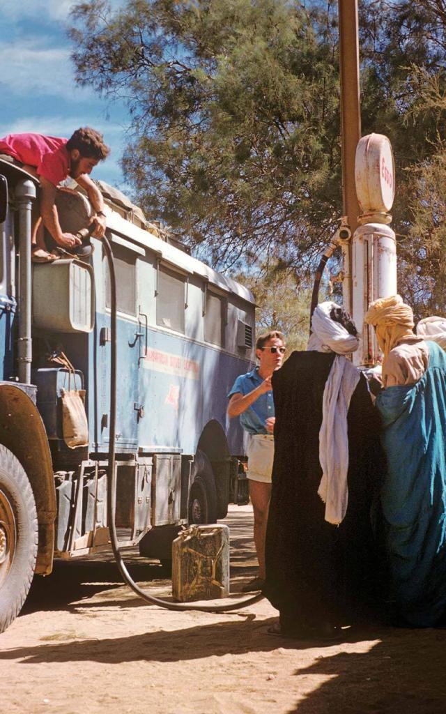 I joined Collyn and Rex in Paris, where Collyn picked me up at the Gare du Nord in what seemed to me to be a truly humongous truck painted bright blue. I had never driven anything so large and was a bit startled by the sight of it. Obtaining permission to cross the Sahara involved two months of battling French bureaucracy in the Paris Surrete. Hugely assisted by Mobil Oil’s political clout, they eventually relented, and permits were granted, conditional on our driving in Algeria only outside the curfew hours of 4:00 p.m. to 9:00 a.m.