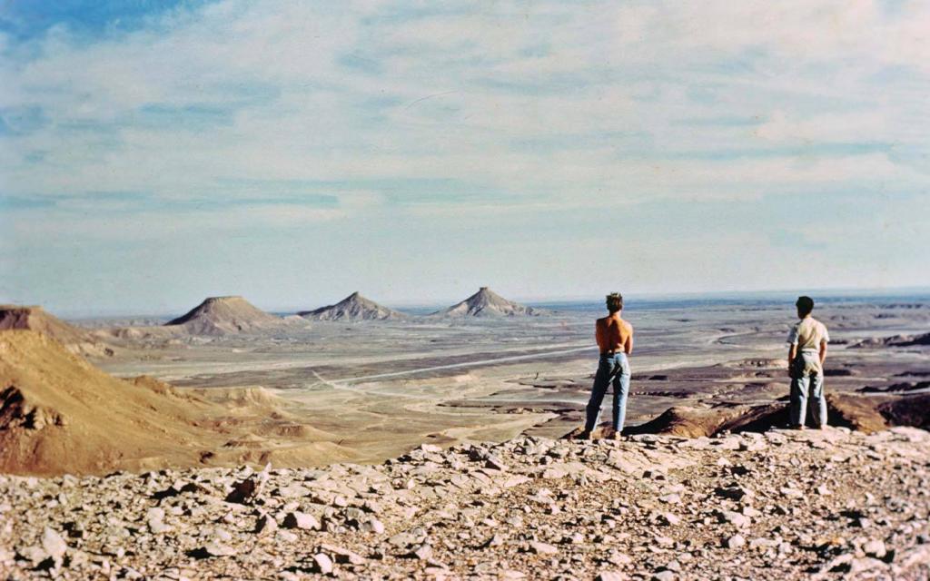 Collyn and Rex admire the view from the escarpment at the southern edge of the Tademaït Plateau