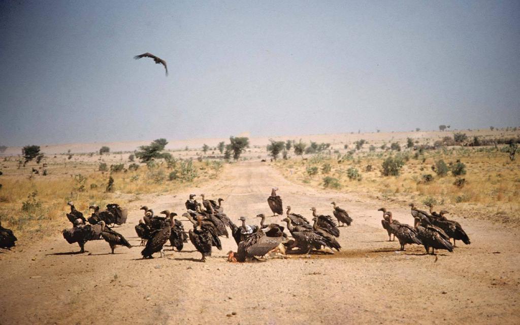Vultures devour road kill in the Sahel