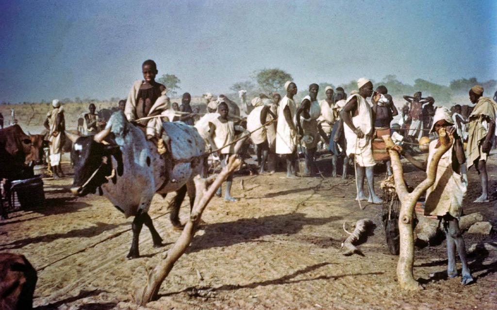The desert gradually morphed into the Sahel, a vast semi-desert area south of the Sahara, stretching from the Atlantic to the Red Sea. We began to see more people and animals even as the condition of the track deteriorated. Driving was arduous, and we worked two-hour shifts. The track would drop abruptly into dry river beds, and after 12 hours of driving, we covered 159 miles at an average speed of 13 mph. Swarms of locusts filled the sky and battered against the windshield. Collyn bitterly complained, “Don’t they know this is the main road to Europe!” Obviously, this matter did not figure very highly in the priorities of the locals.