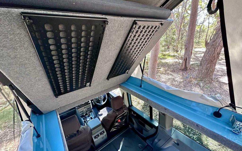 Options without limits: Airline tracks are fitted as standard on Mulgo Pop Tops, allowing for fitment of a multitude of accessories i.e. load bars. These tracks are compatible with the factory Ineos quick release hooks. Under-bed mounted Molle Panels for easy accessible storage. Solar panels to use the large roof surface to charge your batteries.