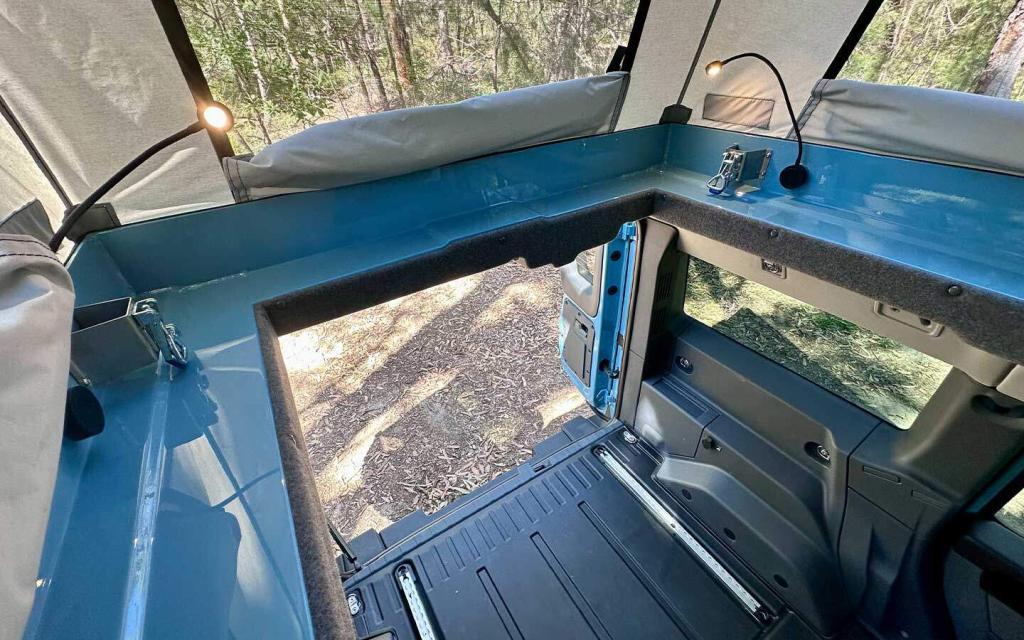Seamless Integration: The Mulgo Pop Top roof conversion seamlessly integrates with the INEOS Grenadier’s original design, maintaining its rugged and timeless appearance. It’s a perfect blend of form and function. Keeping integral design aspects of the Grenadier like the load bearing handles and outside power points. Genuine interior lights are refitted into the pop top lower frame to allow complete factory functionality.