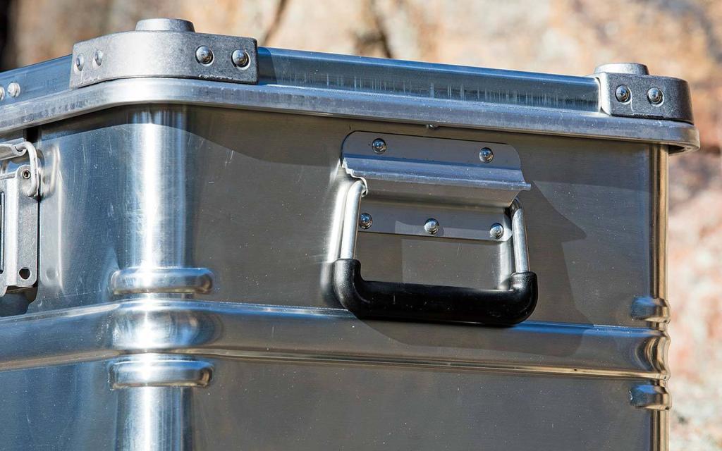 Die Baureihe K470 wird standardmäßig in 25 Grössen angeboten, kann aber auch nach Maß gefertigt werden. Meine beiden Boxen haben die Abmessungen 600 x 400 x 410 cm, fassen 70 Liter und wiegen 5,3 kg. Sie ergänzen meine Ausrüstung perfekt: Eine nutze ich für mein Kochgeschirr, die andere für Lebensmittel. Ein weiteres angenehmes Merkmal sind Alugussecken, die ein Aufeinanderstapeln ohne Rutschgefahr ermöglichen. Mein Vorschlag wäre, die Ecken zusätzlich mit Gewinden zu versehen, damit man verstellbare Beine anschrauben und die Kiste zum Tisch umfunktionieren kann.